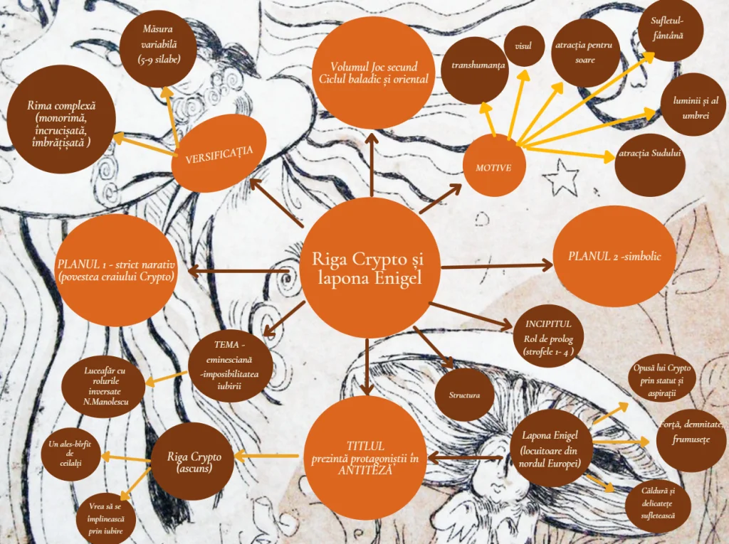 Resursa educațională digitală constă într-o hartă conceptuală pentru creația lirică „Riga Crypto și lapona Enigel”, de Ion Barbu, care ajută la organizarea și structurarea textului.